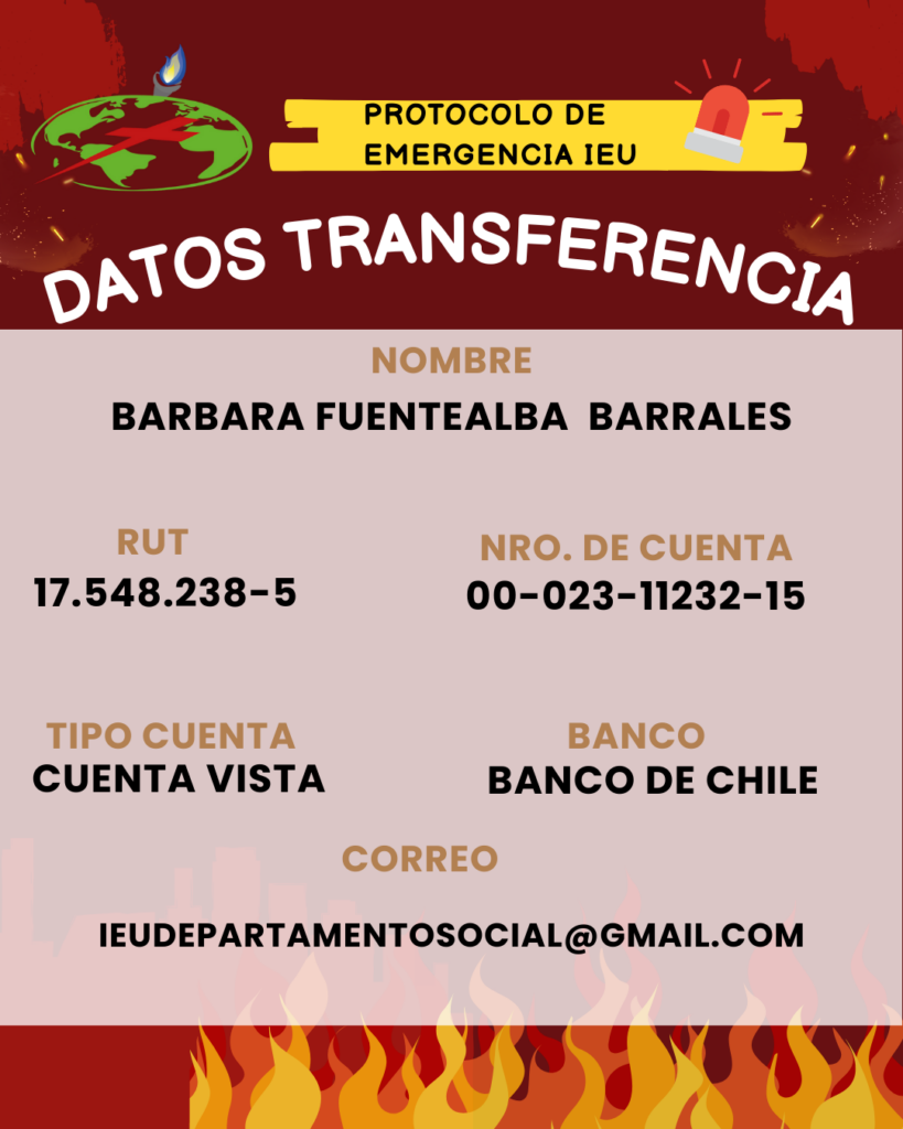 Ante la contingencia por los incendios que afectan a las regiones de Ñuble y Bío Bío, como Iglesia Evangélica Universal – a través del Departamento de Servicio Social - queremos comunicar lo siguiente: